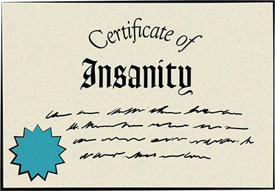 Pero antes de que te vayas, toma este "Certificado de Locura". Te lo estamos dando para asegurarse que nadie te crea y garantizar que podamos reemplazarte sin incidentes.