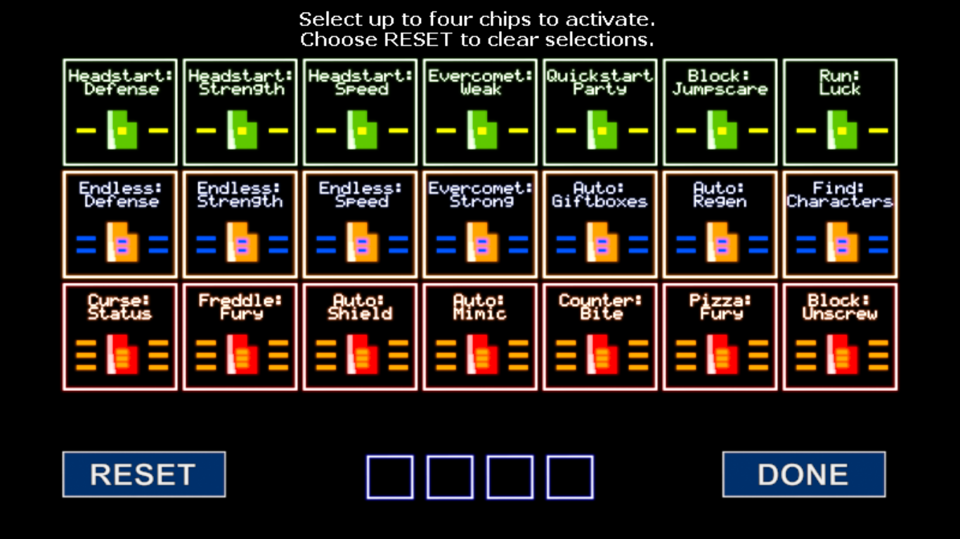 Capacidad de ver la animación e información de los animatrónicos disponibles en la pantalla de selección de Party.