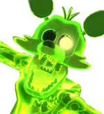 Su apariencia brilla con colores verdes brillantes y un aura amarilla/verde. Tiene un solo ojo amarillo brillante en su cuenca izquierda y carece de un parche en el ojo derecho, exponiendo una cuenca vacía. Tiene dos garfios en su mano derecha que son más grandes y curvos que el garfio normal de Foxy. Su cuerpo también es muy transparente, hasta el punto de que su endoesqueleto es casi visible.