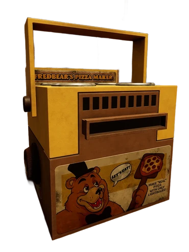Hey, everyone. This is Fredbear's Pizza Maker from Secret of the Mimic. It appears from the Prize Box. This is so cool! This is like a Easy Bake Oven. A functioning oven toy that could be used to bake small foods. This one can bake small pizzas and this is made from Fredbear's Family Diner. I really want this in real life!