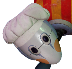 Sembra condividere il suo schema di colori con i Bot Mocio, anche se indossa un cappello e una giacca da chef visibilmente sporca a causa dell'attacco.