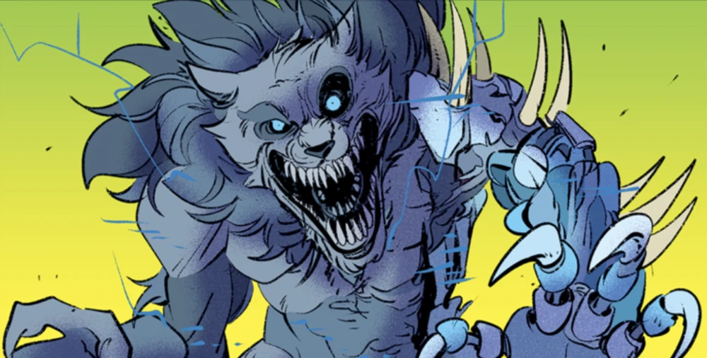 Il lato destro del suo corpo ricorda più da vicino un lupo, essendo molto peloso e con la sua criniera argentata che corre sopra la sua testa e lungo la schiena, e la mano destra e il piede destro sono più piccoli. Il lato sinistro, tuttavia, è più robotico, con un endoscheletro visibile, pelle gommosa e traslucida, un'orbita oculare sinistra più ampia e punte che sporgono dal braccio sinistro.