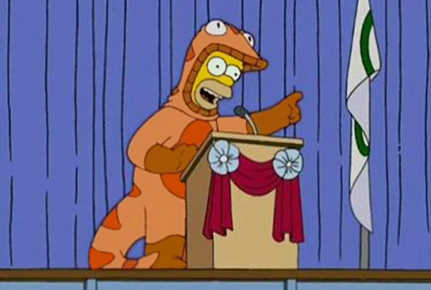 No episódio Vejam Como Homer Corre, estreado em 2005 nos Estados Unidos, Homer Simpson se disfarça de "Salamandra da Segurança", que como o nome propõe, é uma fantasia de salamandra. Boatos dizem de que o homem que usou a fantasia por último acabou morrendo dentro dela, tendo uma grande semelhança com Purple Man, o qual morreu dentro da fantasia de Springtrap.