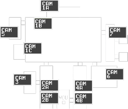 The camera map of the pizzeria. Note the apparent lack of a visible entrance on the Monitor.