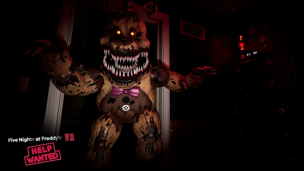 - On the VR version, once Nightmare Fredbear enters the closet, if the player shuts the door, that player will still be jumpscared by him.