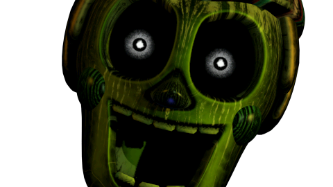 Phantom BB has, essentially, the same model as BB from the second game, but he lacks eyes and has two white buttons (like in the Office in the second game, although that this could also be an error in lighting). He instead has small, glowing, white pupils similar to Springtrap and the other phantoms and is missing both his "Balloons!" sign and balloon. His rosy cheeks appear to be colored in deep green. Phantom BB appears to be charred or burnt, possibly foreshadowing the torching of the attraction. If one looks closely, one can see a light-brown smear on his cap as well as his shirt.